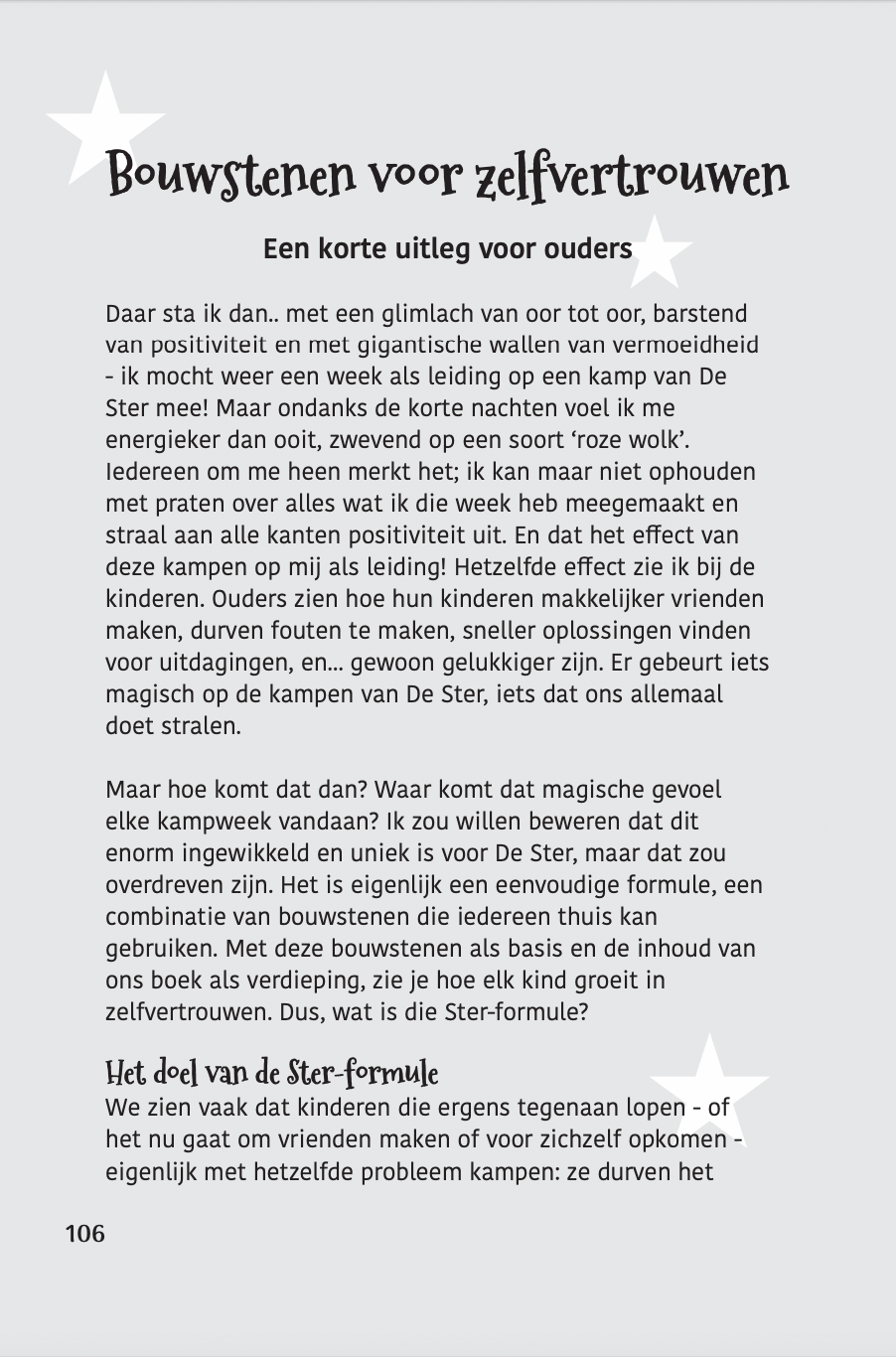 Met deze eenvoudige formule, een combinatie van structuur, positiviteit, echte emoties en plezier, kun je kinderen meer zelfvertrouwen geven. Deze formule staat achterin het boek fijn uitgelegd door psycholoog Merel Nederend en is direct toepasbaar. Zo wordt Sem Ster een boek voor het hele gezin :-))